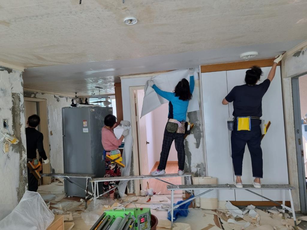 [2024.06.25.(화)] 빛솔도배봉사단(회장 이은미)에서는 대산읍 취약계층가정에 도배봉사를 진행하였습니다. 집 내부의 벽지가 파손되고 노후되어 교체해드려 실내주거환경개선에 도움을 드렸습니다. |