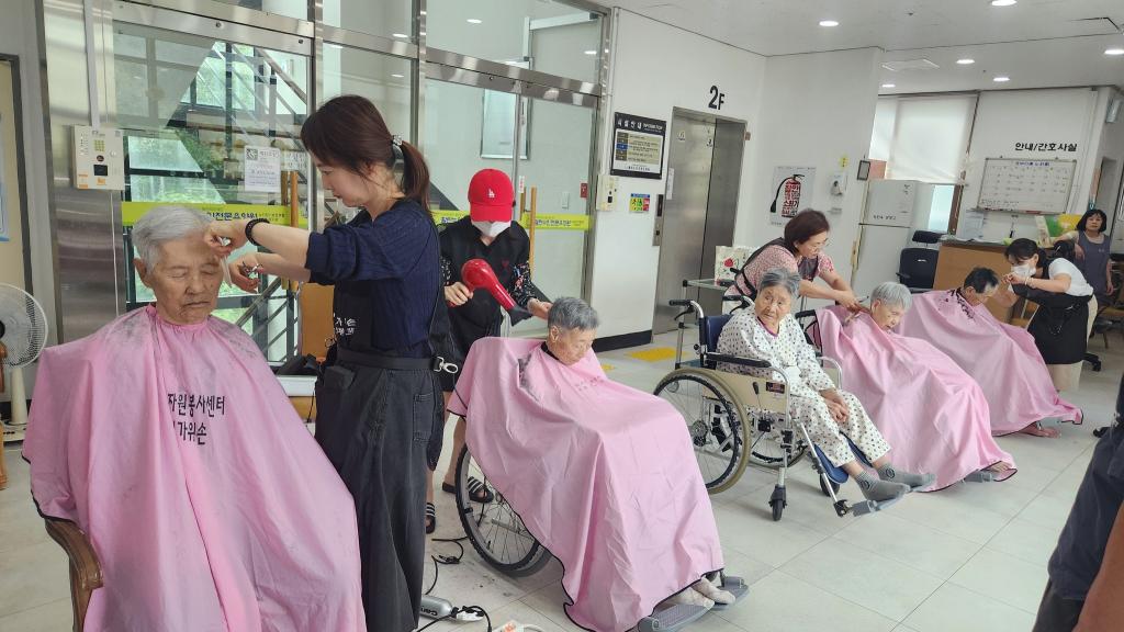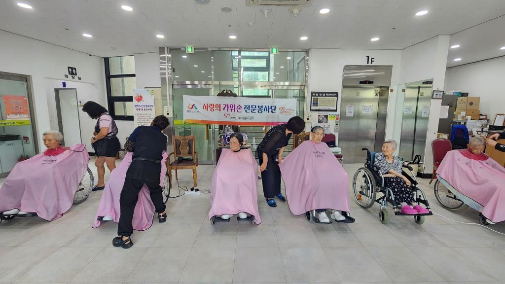 사랑의가위손 전문봉사단 활란요양원을 방문하여 추석맞이 이미용 봉사 진행 하였습니다