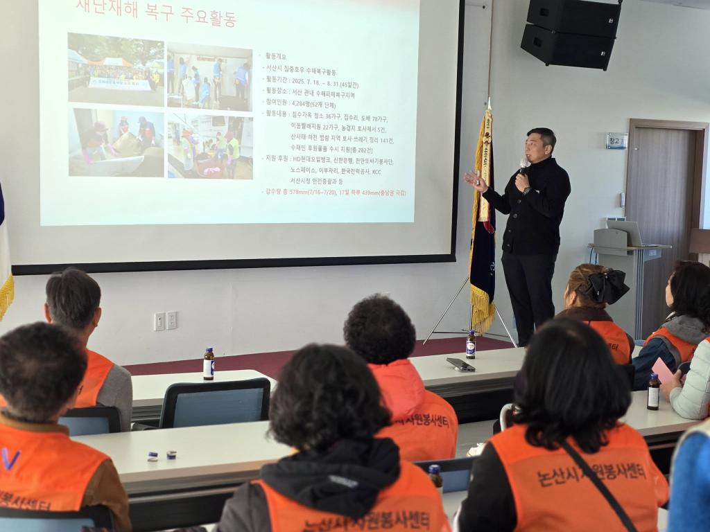 "재난 대응 역량을 높인다!" 서산-논산 센터, 재난재해 대응 노하우 공유로 협력 강화 이날 워크숍에는 논산시 재난재해봉사단원 약 30여 명이 참석했으며, 서산시자원봉사센터 김택후 사무국장이 강사로 나서 '재난대응 및 봉사단체 운영, 사례 공유'를 주제로 특별 강연을 펼쳤다. 김택후 사무국장은 특히 2025년 7월 서산 지역을 강타한 집중호우 당시의 신속한 복구 시스템을 상세히 소개하였으며, 또한 한화토탈에너지스, 현대트랜시스, HD현대오일뱅크 등 지역 기업과의 성공적인 연계 후원 사례를 구체적으로 공유해 참석자들의 큰 관심을 받았다. 강의는 재난 단계별 봉사센터의 역할부터 전문 봉사(집수리, 도배, 급식 등)의 조직 및 동원 체계, 현장에서의 안전 교육에 이르기까지 실무적인 내용 중심으로 진행되어 현장 적용 가능성을 높였다. 서산시자원봉사센터 한도현 이사장은 "재난은 지역의 경계를 넘어 발생하기에, 체계적인 관리 시스템과 상호 협력이 무엇보다 중요하다"며, "서산시가 쌓아온 노하우가 논산시의 재난 대응 역량을 강화하는 데 실질적인 도움이 되기를 바란다"고 전했다. 논산시자원봉사센터 오천규 팀장은 "서산시자원봉사센터의 체계적인 재난 대응 시스템과 성공 사례를 공유할 수 있어 큰 도움이 되었다"며, "오늘 배운 내용을 바탕으로 논산시 재난재해봉사단의 전문성을 높여 재난 발생 시 시민 안전을 최우선으로 지킬 수 있도록 노력하겠다"고 화답했다. 이번 특강을 통해 충남 지역 자원봉사센터들이 서로의 경험을 나누고 협력하여, 재난재해 대응 봉사의 전문성을 한 단계 끌어올리는 중요한 계기가 될 것으로 기대한다. |