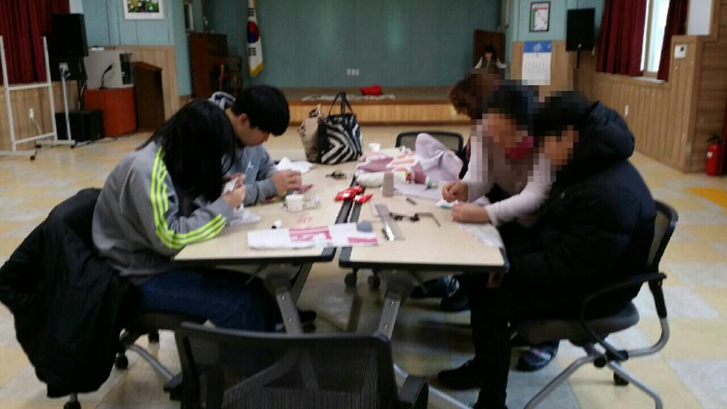 | 내용 | 1월4일에 폐현수막으로 팔토시 만들기 농촌지역은 이곳에 꼭 필요한 팔토시를 폐현수막으로 만들어 보았습니다 만든 팔토시는 어르신들께 전달할 예정입니다 태어나 처음으로 바늘 잡아봤다는 학생들 .. 바느질에 재능이 있는지 처음엔 버벅대더니 갈수록 일취월장하는 실력을 볼 수 있었습니다 아직 매듭짓기는 못하지만, 다음부터 더 나은 바늘땀을 기대해 봅니다