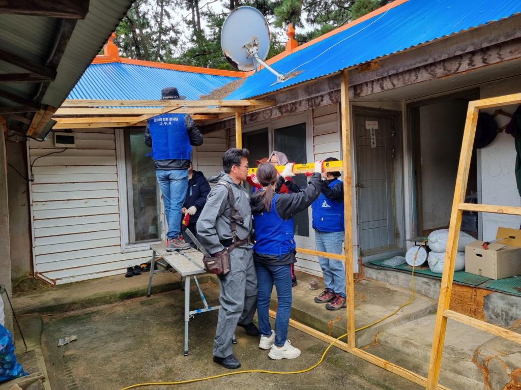 나누사집수리봉사단, 대산읍 취약계층 가정에 '비가림막 & 지붕 채양' 설치 봉사 봉사단은 지난 10월 26일 서산시 대산읍에 위치한 취약계층 가정을 방문해 꼭 필요한 집수리 봉사를 진행했습니다. 특히, 이번 활동은 비가림막 설치와 지붕 채양(차양) 설치에 중점을 두어, 비바람과 햇빛으로부터 주거 공간을 보호하고 생활 편의를 높이는 데 주력했습니다. 이경구 회장을 비롯한 봉사단원들은 이날 이른 아침부터 현장에 도착해 안전을 최우선으로 작업을 진행했습니다. 낡고 오래된 주택의 현관 및 창문 주변에 견고한 비가림막을 설치하여 비가 새는 것을 막고, 햇빛을 가려주는 지붕 채양을 설치해 주거 환경을 한층 쾌적하게 개선했습니다. 이경구 회장은 "환절기 궂은 날씨에도 묵묵히 봉사에 임해준 회원들께 감사하다"며, "우리의 작은 기술이 이웃에게는 안전하고 따뜻한 보금자리를 선물할 수 있다는 것에 큰 보람을 느낀다. 앞으로도 소외된 이웃들이 안심하고 살 수 있는 주거 환경을 만드는 데 최선을 다하겠다"고 밝혔습니다. 나누사집수리봉사단은 주거 환경이 열악한 가정을 대상으로 지속적인 집수리 봉사를 펼치며 지역 사회에 따뜻한 온기를 전하고 있습니다. |