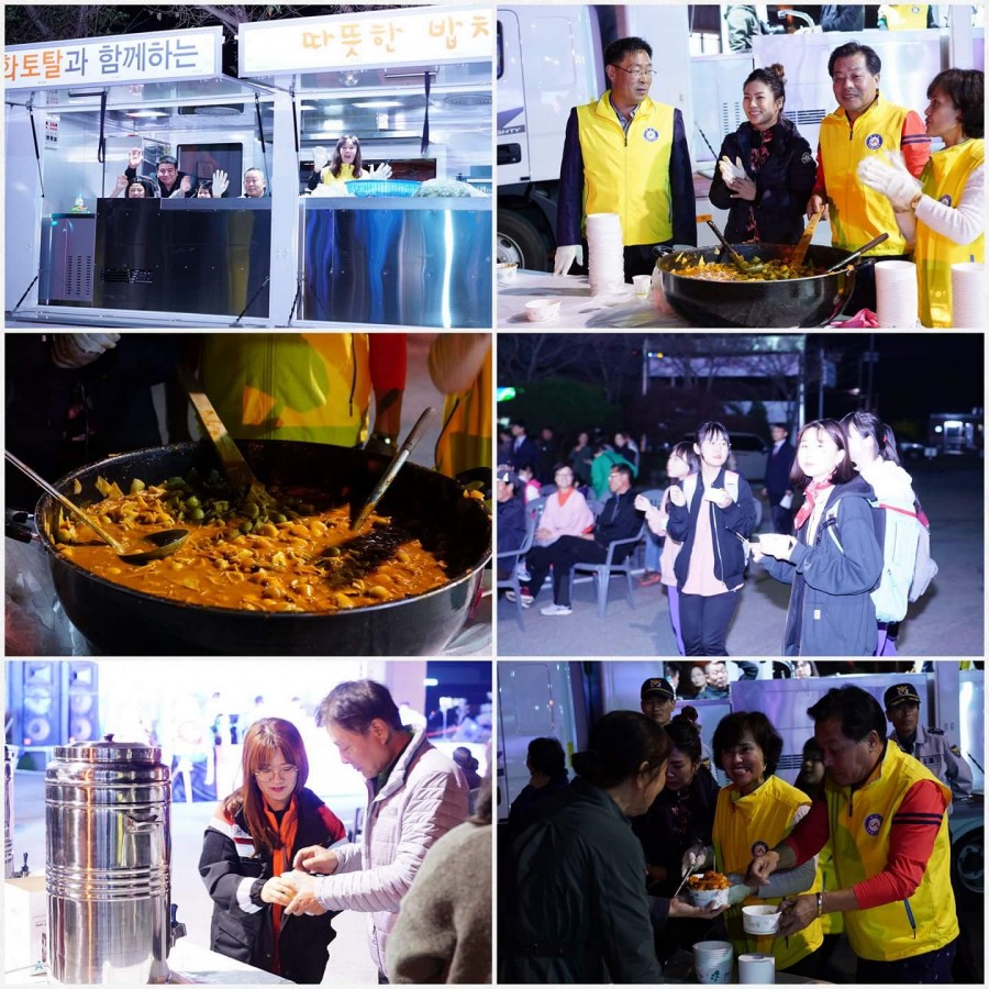 인지면민과 함께하는 거리음악회에 강완설 회장님,정경화 회장님,김미화 회장님 등 자원봉사센터에서 간식으로 떡볶이를 제공해주심