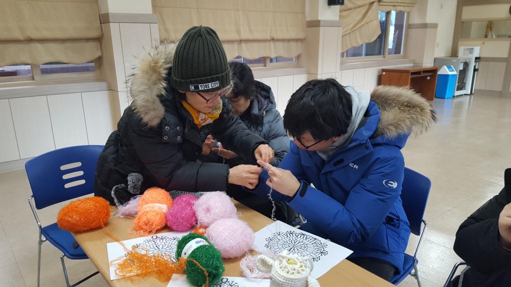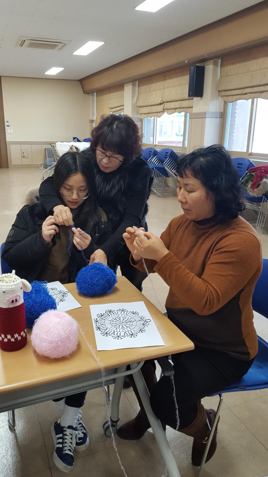 뜨개질 전문가^^ 안은자선생님께서 지곡을 방문.. 봉사자분들과함께 각마을회관에 전달될 수세미뜨기 교육을 하셨습니다..