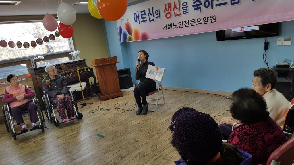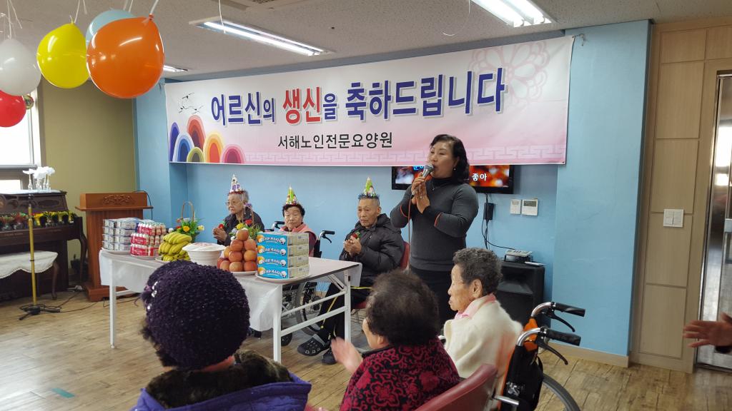 해오름 봉사단분들이 서해요양원을 방문하셔서 노래와 율동,책읽어드리기 활동을 하시며 다함께 축하를 해드렸습니다..
