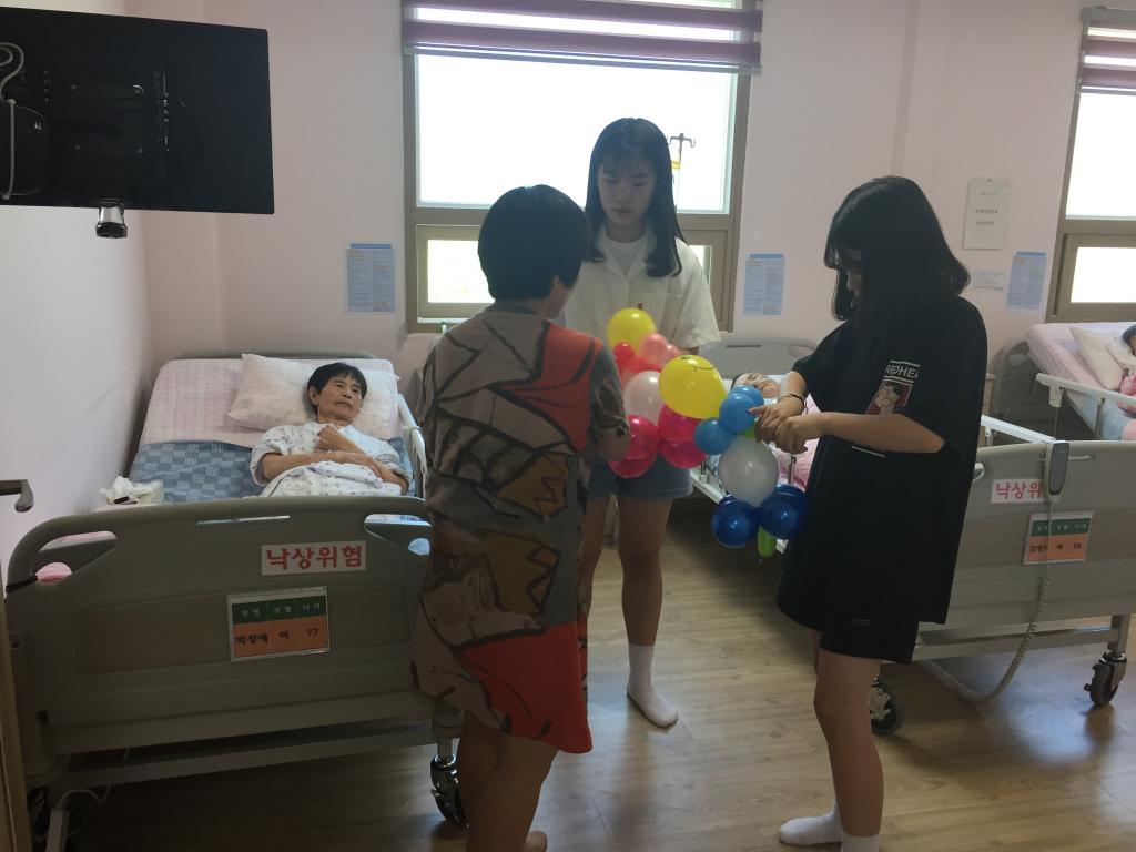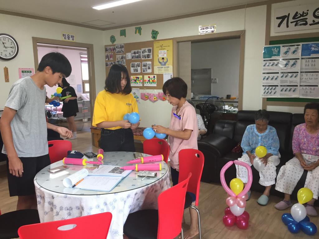 음암또바기 풍선아트 봉사자들과 청소년들이 함께 풍선아트를 배워 지역의 요양원을 방문하여 어르신들과 말벗도 하며 풍선아트 봉사활동을 함